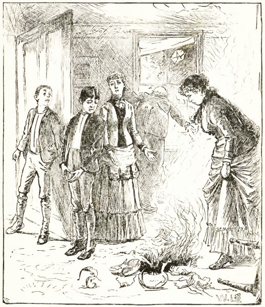 We ran down and got two pails of water, and poured[Pg 234] them down the chimney. That put the fire out, but you would hardly believe that Harry was more unreasonable than ever, and said we were trying to drown him. There is no comfort in wearing yourself out in trying to please little boys. You can't satisfy them, no matter how much trouble you take, and for my part I am tired of trying to please Harry, and shall let him amuse himself the rest of the time he is at our house.