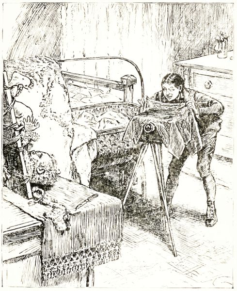 I made a great discovery last week. You know I said that when you look through the camera at anything you see it upside down on the ground glass. This doesn't look right, and unless you stand on your head when you take a photograph, which is very hard work, you can't help feeling that the picture is all wrong. I was going to take a photograph of a big engraving that belongs to father, when I thought of turning it upside down. This made it look[Pg 218] all right on the ground glass. This is my discovery; and if men who take photographs could only get the people they photograph to stand on their heads, they would get beautiful pictures. Mr. Travers says that I ought to get a patent for this discovery, but so far it has only got me into trouble.