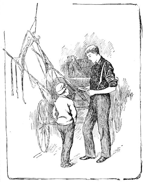 Mr. Trask could not help smiling at the boy’s earnestness, but it pleased him, nevertheless, to see that he was bent upon entering the service and did not intend to let a little hard work stand in the way of getting there. That very 15afternoon found Bruce with his coat off whistling merrily as he rubbed down the horses, Pete, Jack and Joe, and gave them their hay and oats. Charley Weyman watched him from his seat in the rear room, and remarked to Brophy: “That lad takes hold of his work as if he liked it.”