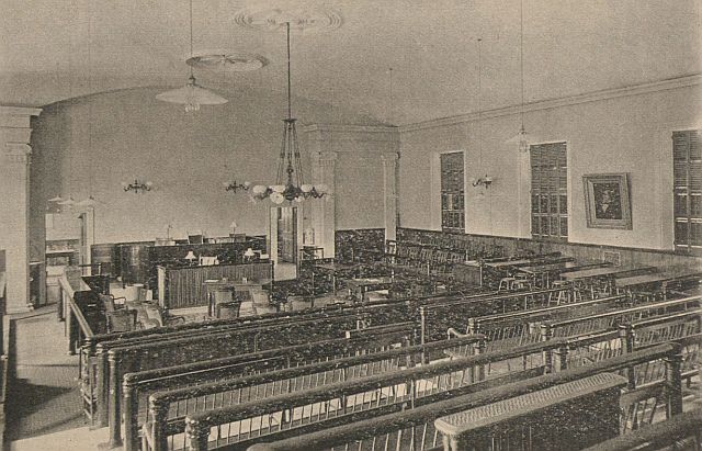 The funeral of the murdered people took place on the morning of August 6th. Crowds of people numbering between 3000 and 4000 appeared on Second street in front of the house, and about twenty policemen stood around and maintained a clear passage. Rev. Dr. Adams of the First Congregational Church and City Missionary Buck soon arrived and entered the house. The bodies were laid in two black cloth-covered caskets in the sitting room, where Mr. Borden was killed. An ivy wreath was placed on Mr. Borden’s bier and a bouquet of white roses and fern leaves, tied with a white satin ribbon, was placed over Mrs. Borden. There were about 75 persons present at the funeral services in the house. The services consisted of reading from the scriptures and prayer. There were no singing and no remarks.
