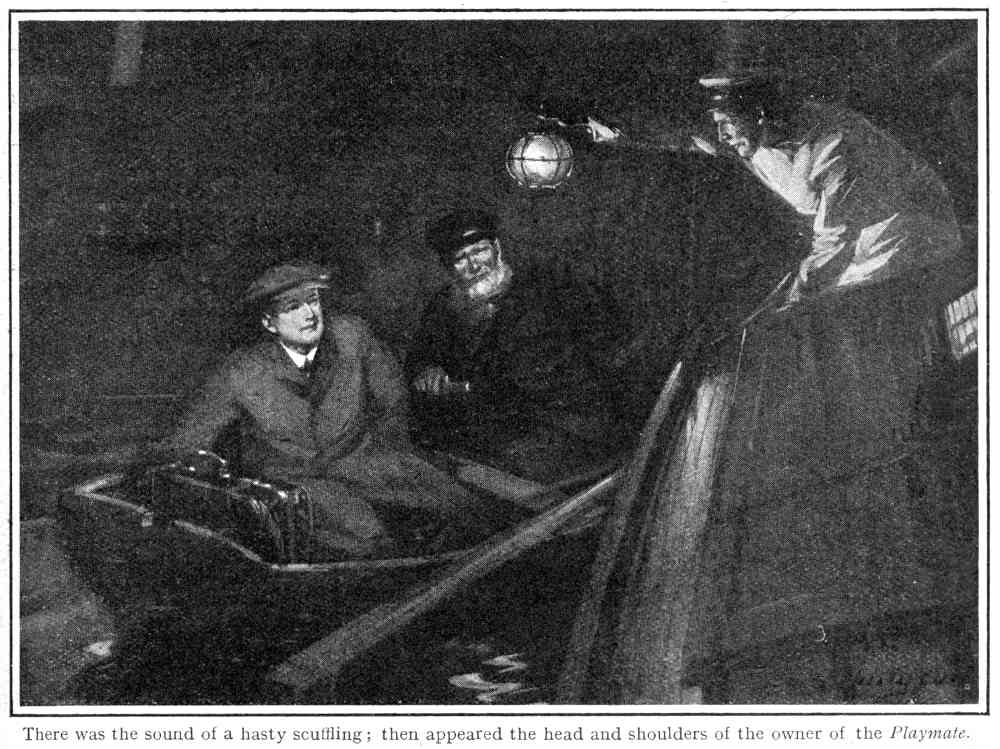 There was the sound of a hasty scuffling, the awning was partially unlaced, and a hand holding a lantern appeared, followed by the head and shoulders of the owner of the cutter Playmate.