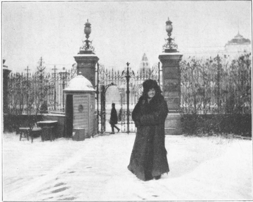 I was much laughed at once because I made Vanderlip in the street shoulder a woman’s burden and carry it for her to her house. She was a frail well-dressed woman, obviously exhausted by a long walk over cobblestones, and was utterly incompetent to carry the bundle containing{174} her rations. I would have taken it for her myself if I had been alone, but as Vanderlip was champion-in-chief of the frail and the well-dressed, I thought he might as well do it. Litvinoff was amused when he heard about it, and said that one might really find a good deal of work to do in Moscow on those lines.