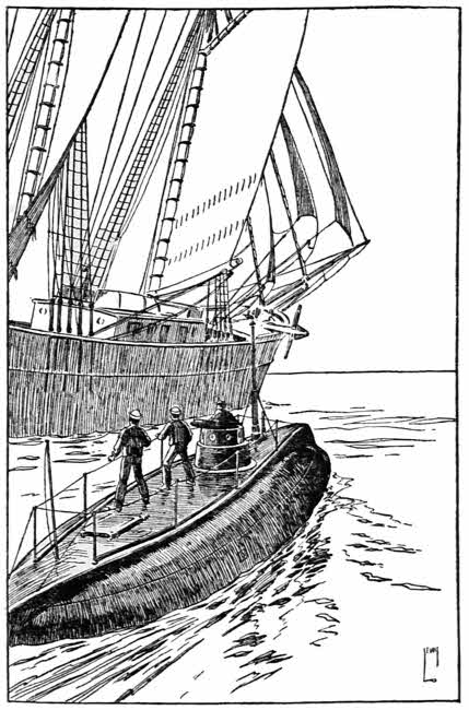 “Give them a hail, Parry,” ordered Captain McGill, as the submarine crept in alongside the moving yacht.
