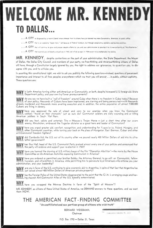 The events of these 2 days were witnessed with shock and disbelief by a Nation grieving the loss of its young leader. Throughout the world, reports on these events were disseminated in massive detail. Theories and speculations mounted regarding the assassination. In many instances, the intense public demand for facts was met by partial and frequently conflicting reports from Dallas and elsewhere. After Oswald’s arrest and his denial of all guilt, public attention focused both on the extent of the evidence against him and the possibility of a conspiracy, domestic or foreign. His subsequent death heightened public interest and stimulated additional suspicions and rumors.