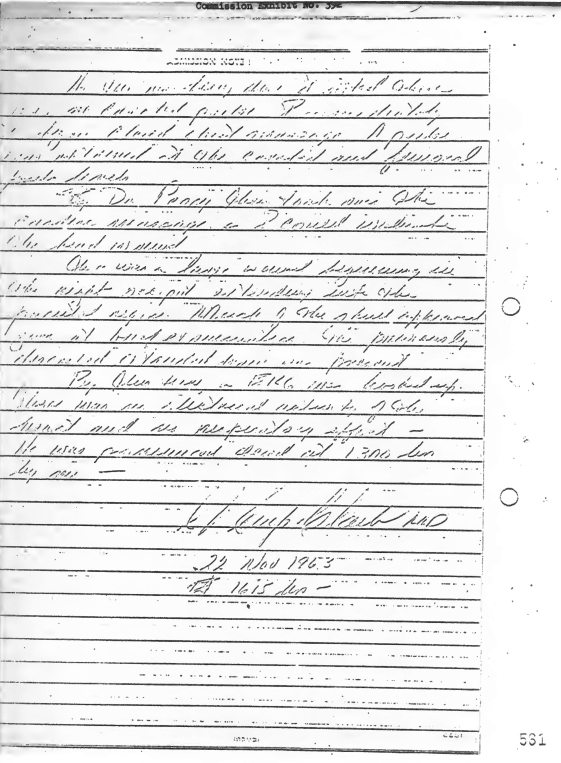 Appendices: These documents and reports are Commission Exhibits. The typed ones have been transcribed here and also presented as illustrations at the end of each report; the handwritten ones, and other handwriting, such as signatures, are presented here only as illustrations.