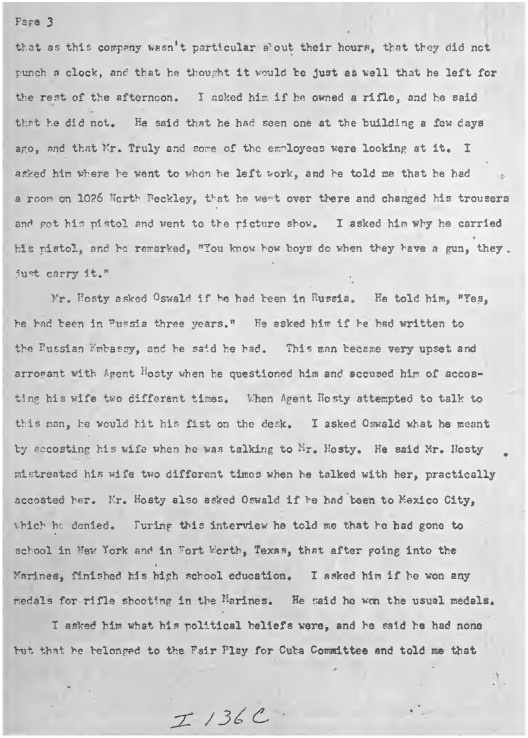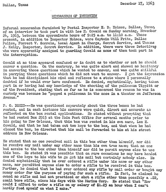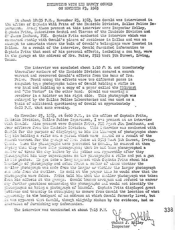 In this report the Commission submits the results of its investigation. Each member of the Commission has given careful consideration to the entire report and concurs in its findings and conclusions. The report consists of an initial chapter summarizing the Commission’s basic findings and conclusions, followed by a detailed analysis of the facts and the issues raised by the events of November 22, 1963, and the 2 following days. Individual chapters consider the trip to Dallas, the shots from the Texas School Book Depository, the identity of the assassin, the killing of Lee Harvey Oswald, the possibility of a conspiracy, Oswald’s background and possible motive, and arrangements for the protection of the President. In these chapters, rather than rely on cross references, the Commission on occasion has repeated certain testimony in order that the reader might have the necessary information before him while examining the conclusions of the Commission on each important issue.