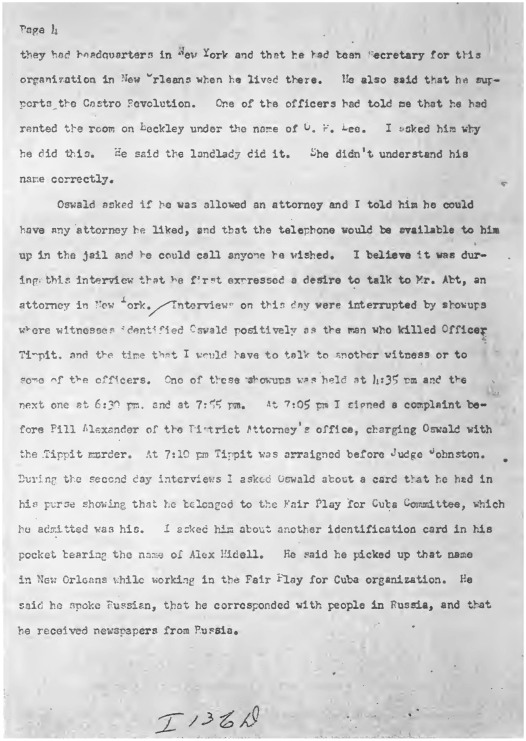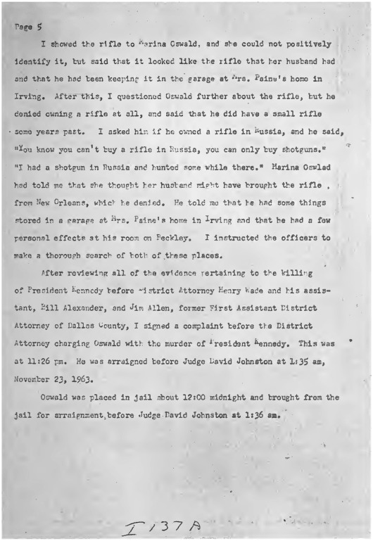 Page 602: “At 7:10 pm Tippit was arraigned” should be “Oswald”.