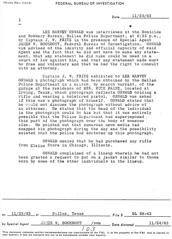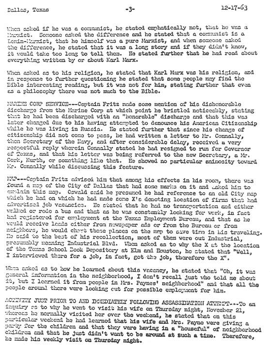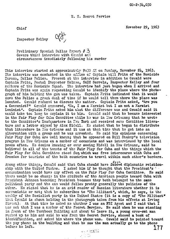 During December and early January the Commission received an increasing volume of reports from Federal and State investigative agencies. Of principal importance was the five-volume report of the Federal Bureau of Investigation, submitted on December 9, 1963, which summarized the results of the investigation conducted by the Bureau immediately after the assassination. After reviewing this report, the Commission requested the Federal Bureau of Investigation to furnish the underlying investigative materials relied upon in thexii summary report. The first investigative reports submitted in response to this request were delivered to the Commission on December 20, 1963. On December 18, the Secret Service submitted a detailed report on security precautions taken before President Kennedy’s trip to Texas and a summary of the events of November 22, as witnessed by Secret Service agents. A few days later the Department of State submitted a report relating to Oswald’s defection to the Soviet Union in 1959, and his return to the United States in 1962. On January 7 and 11, 1964, the attorney general of Texas submitted an extensive set of investigative materials, largely Dallas police reports, on the assassination of President Kennedy and the killing of Oswald.
