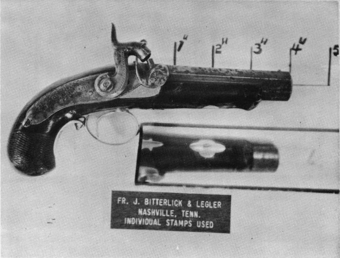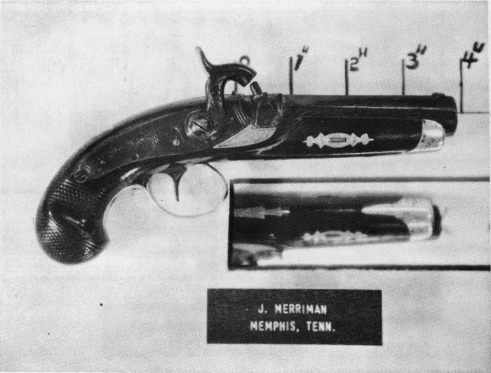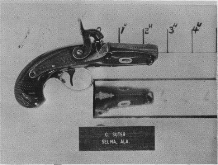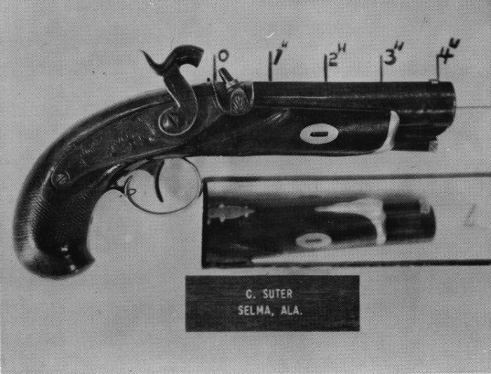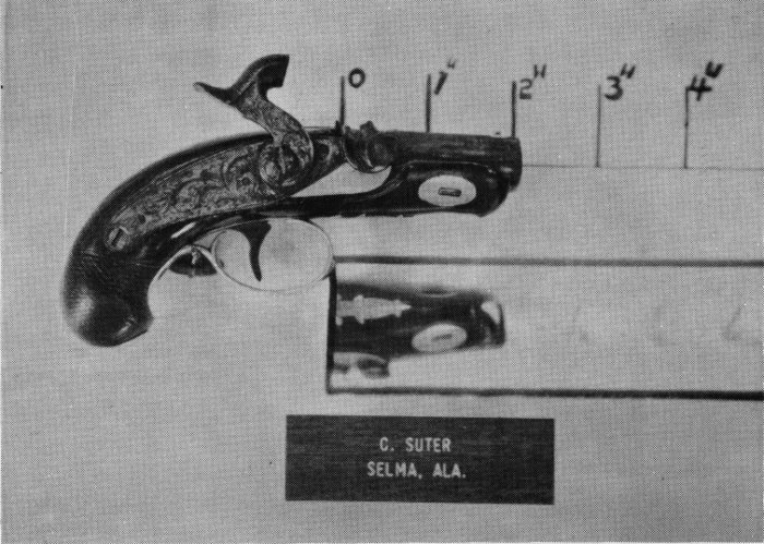 During the 20 months in 1969 and 1970 that we have been displaying our derringers at gun shows we have won 25 awards. Our derringers have been displayed from the East Coast to the West Coast and from the North to the South. Great acclaim was given them at the National Rifle Association Convention. Considering the point that awards are won not only on quality or quantity but on the educational value, we believe that our display is one of the best. Now that the ice has been broken towards listing and showing all of the different southern makers, let us hope that our collector friends will come up with more information and more details of when these little known gunsmiths and dealers operated and perhaps new makers that are not now recognized or known.
