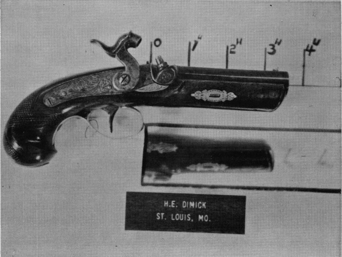 Thus I have narrowed down geographically this story of the derringers of the Mississippi Valley to an exclusive group. It is sad that so little research work has been done in this direction in the past. Careful study of other books shows that only six or eight of these twenty-nine names and authenticated guns are spoken of in limited terms.