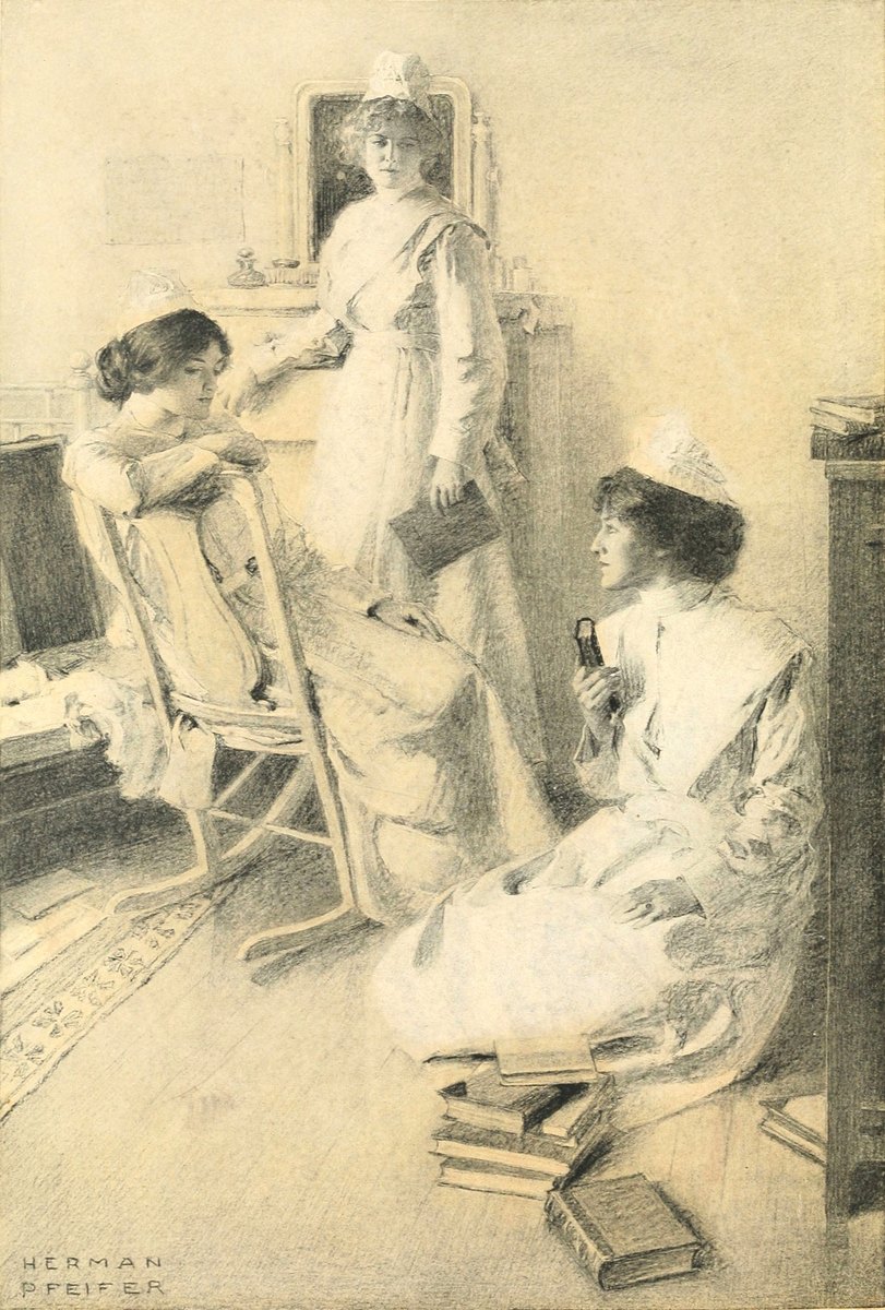 Dizzily, with her stubby finger-tips prodded deep into every jaded facial muscle that she could compass, she staggered toward the air and, dropping down into the first friendly chair that bumped against her knees, sat staring blankly out across the monotonous city roofs that flanked her open window, trying very, very hard, for the first time in her life, to consider the general phenomenon of being a trained nurse.