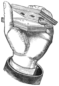 The art of magic, as it is now understood, is no longer a secret and mystic profession; it is a written art, and may be easily acquired by the clever mechanician, or any person having dexterous hands and a large amount of self-possession and impudence. I say “impudence,” because most of the best tricks are really so extremely simple that many persons of a timid or self-conscious disposition would feel ashamed to venture to perform them, in case of what they think must be inevitable detection and exposure. But so blind is poor human nature that the clever conjuror can always select his man for “forcing a card upon him,” even though he makes his dupe believe he has selected one at his own will and choice. At the request of a large number of friends, I will conclude this volume by giving a few tricks which may be performed after a very little practice by anybody who will take a little trouble, and for the execution of which no, or very little, apparatus will be required—at any rate, only such as can be obtained either in any ordinary house, or at a very trifling expense. The task which I have set myself is not, as the reader might imagine, an easy one, for in endeavoring to give some tricks which have not before been already fully explained in books published on the subject, I find that there is scarcely a parlor trick which has not already been explained. Therefore, to give some tricks that have never yet been exposed is really a very difficult and almost impossible task. However, I have done my best, and the following little deceptions which the amateur conjuror may safely perform, will enable him to give a capital evening’s entertainment to his friends or family circle. I would just add one word before quitting the subject of magic and559 conjuring. My object in the foregoing chapters was to show the reader, first, that the art of magic is merely the art of a very clever illusionist, who, by swiftness of execution and a thorough knowledge of the laws of mechanics and optics, can make his audience deceive themselves; secondly, to afford some entertainment to my readers; and, thirdly, to set the ingenious at work to solve the mysteries of the art upon the basis I have given in these chapters. I venture to think, from the observations I have heard, that all these objects have been attained. And now for a few parlor tricks.