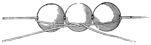 II. Indian Sand Trick.—This trick has been made famous by the Hindoos, who for many centuries contrived to retain the secret. It consists of placing ordinary sand in a basin full of water, stirring the water and taking out the sand in handfuls, perfectly dry. It need scarcely be said that without previous preparation it is impossible to effect this. Take two pounds of fine silver sand, place it in a frying-pan, and heat well over a clear fire. When the sand is thoroughly heated place a small piece of grease—the composition of a paraffin candle preferred—among the sand, stirring it well up to get it thoroughly mixed. Then let the sand get cold. You place into a basin of cold water two or three handfuls, then stir the water well. It will be found that the sand repels the water, and can be drawn out perfectly dry. It is very important that only a small portion of grease560 be used, so that when you hand round the sand for examination its presence may not be observed.