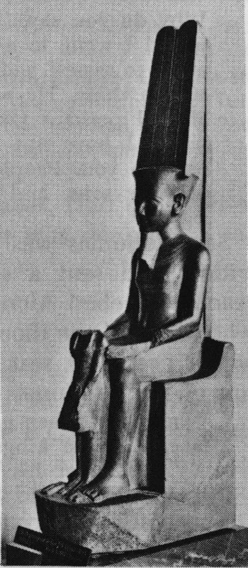 Seated Figure of Akhenaton. The young king is depicted in a conventional pose at Thebes before he moved his capital to Akhetaton.