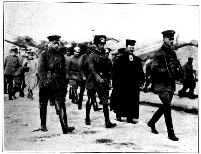 | The former Crown Prince in his official face, attending the funeral of a German officer and count, whose military orders are carried on the cushion in front | 62 |