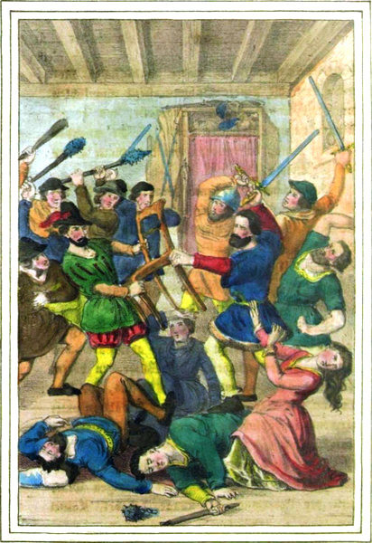 „Elender Wollüstling!“ brüllte der rasende Philipp, und, von seinem Schusse getroffen, stürzte der Graf wimmernd zur Erde.[37] —