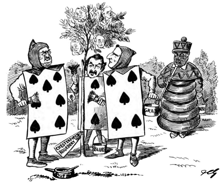 The Red King: Harcourt, Grey, and Lloyd-George are all putting their own colours on, I think I’d better paint it myself.]