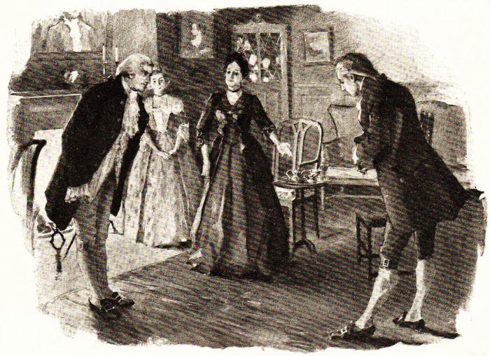 Mistress Betty, obeying a look from her mother, rose at once and went to the harpsichord, never thinking of the ungraceful and disobliging protest of more modern days. She seated herself, and struck boldly into "The Marquis of Huntley's Rigadoon." She had, indeed, a skilful little hand, and as the touch of her small fingers filled the room with quaint music the Earl sat tapping with his foot to mark the time, and smiling at the little maid's grave air while she played. When her performance was over she rose, and, making a reverence to her mother and her guest, returned to her sampler.
