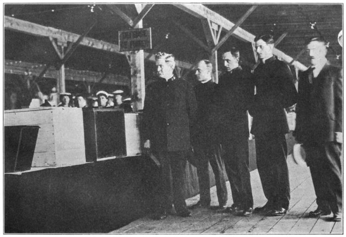 [Pg 312] Mr. Nixon declared that to jump from a deck high above the water filled most persons with terror, and he mapped out a safety slide which could be shot out from the deck of a vessel in a few minutes. Moreover, Mr. Nixon asserted that a light ray that will penetrate a fog must be worked upon by scientists, and he added that he had expected to see before this a direction indicator.