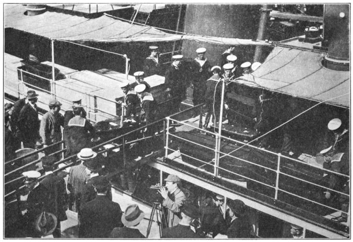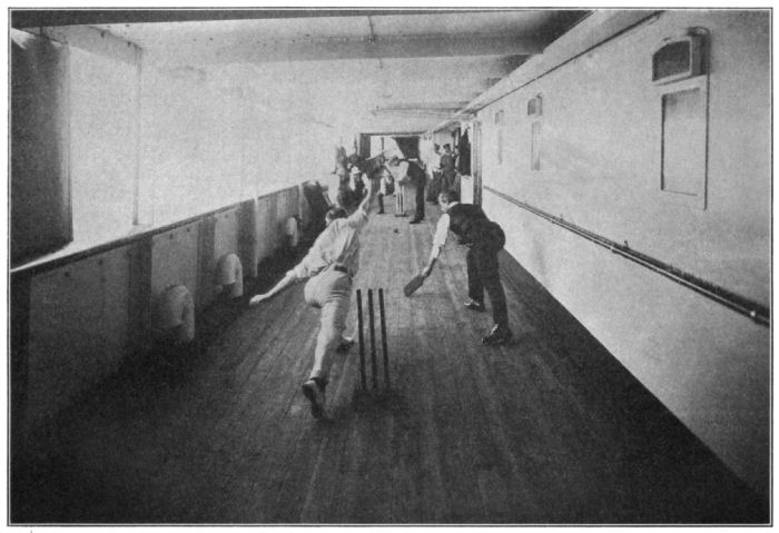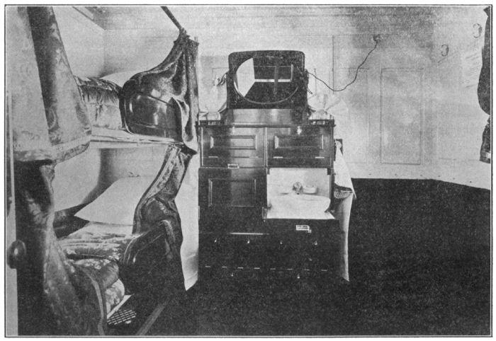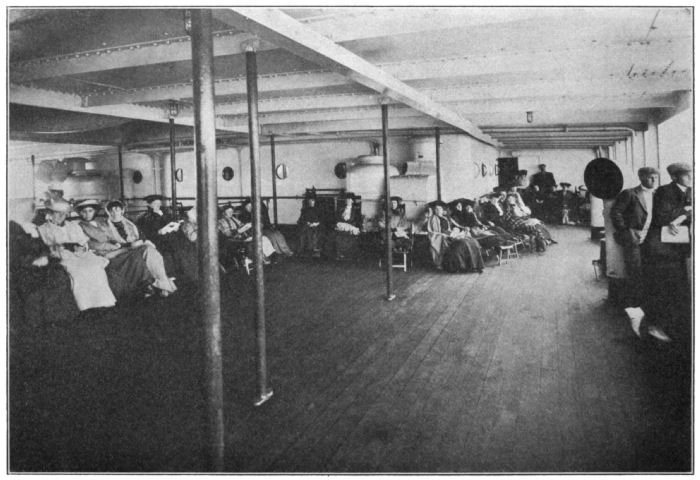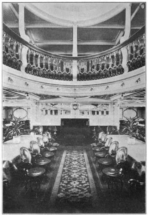 Fainter and fainter the crowd on the dock appeared to the passengers on board, until finally the dock itself was lost to view as the graceful vessel gained headway. Some of the passengers remained long at the ship’s rail, held by the fascination of the water, which seemed swiftly to approach, [Pg 15] and as swiftly to move away. Others, singly or in groups, left the rail to arrange their belongings in their staterooms, to inspect the magnificence of the vessel’s equipment, and to accustom themselves to their new surroundings.