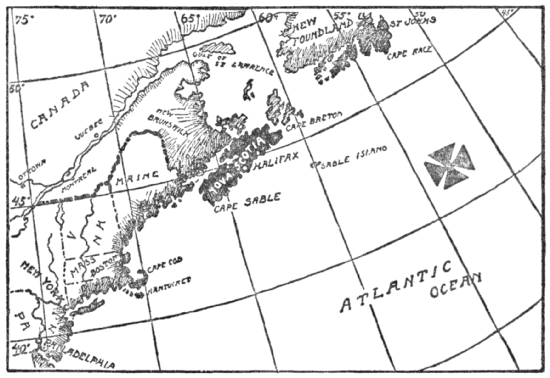 Captain Kendall stopped his ship at Rimouski, a town of 2,000 inhabitants, on the New Brunswick shore, about 180 miles northeast of Quebec as the channel flows. It is a mail station, the last outpost of the Dominion mail service. Bags of mail were loaded aboard, and the Empress moved steadily out into the broad river.