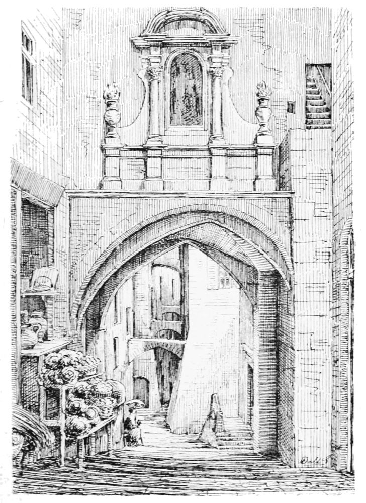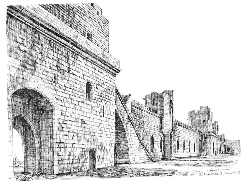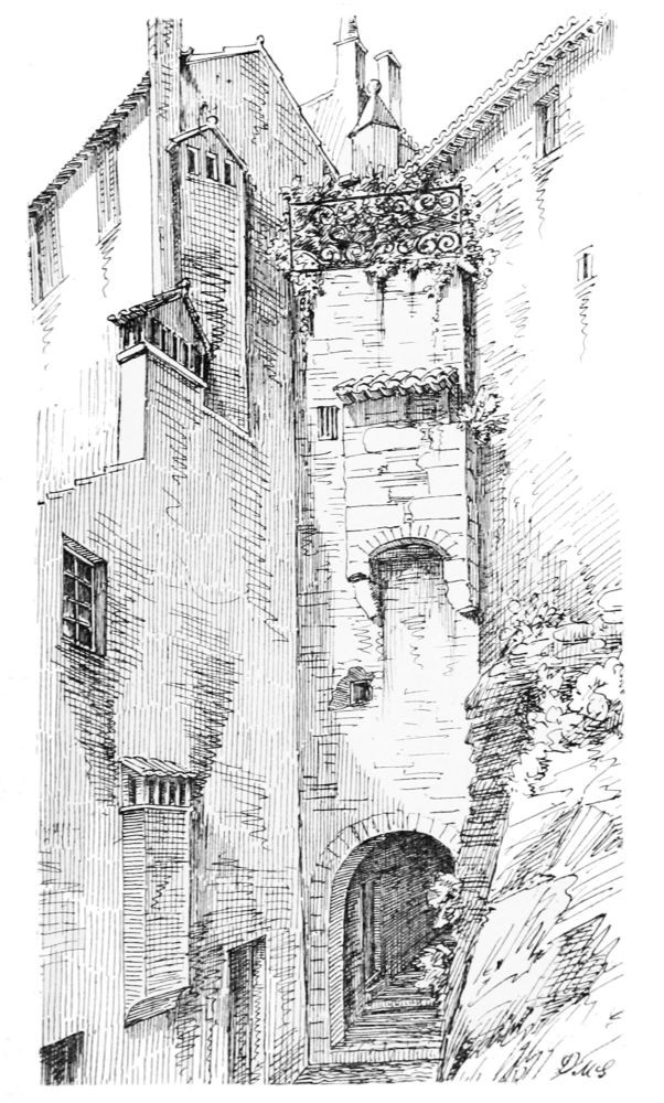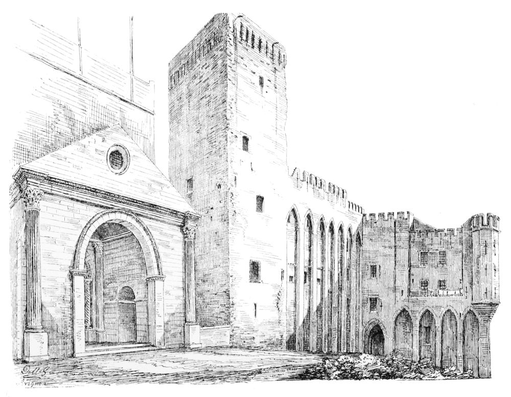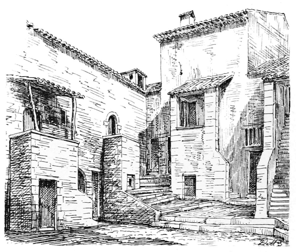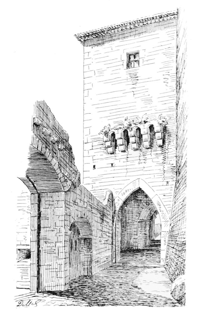 At Avignon the change of aspect is even more complete. “On arriving at Avignon,” says Prosper Mérimée, “it appeared to me that I had left France behind. Landing from the steamboat I had not been prepared by a gradual transition for the novelty of the spectacle which presented itself; the language, the costumes, the aspect of the{4} country, everything appears strange to one coming from the centre of France. I believed myself in the middle of a Spanish town. The crenellated walls, the towers furnished with machicolations, the country covered with olives and plants of a tropical vegetation, recalled Valencia, &c.”
