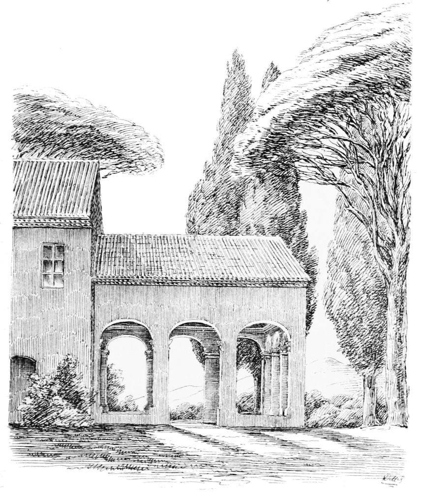 The buildings in these gardens and fields particularly strike the eye of the architect. They are so unlike what he has been accustomed to, and left behind only a few hours ago. The houses of timber-framed work, with their steep roofs covered with slates or flat tiles, and the snug homesteads of England and the North of France, have entirely vanished; and in their stead only small square or oblong erections are to be seen scattered here and there through the fields, with plastered and tinted walls, and covered with tiled roofs of the ribbed Italian pattern, all laid at flat slopes, and generally having one side of the roof much longer than the other.