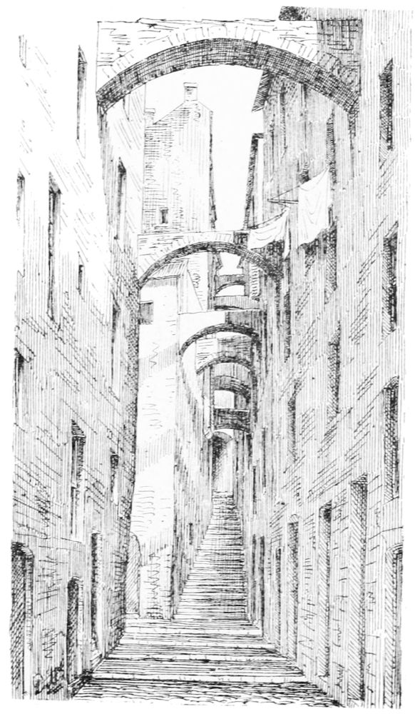 This municipal principle is a leading characteristic of the Middle Ages in Italy and Southern Gaul, and distinguishes these countries from the Northern provinces. Traces of it are still very apparent in Italy and Provence, and contribute greatly to the picturesque character of these provinces. There even yet the soil is to a great extent cultivated by peasants, who dwell together in crumbling old cities perched on the tops of hills, and surrounded with ancient walls. Daily the men, women, and mules descend to their labour in the fields, till the evening, when they may be met toiling up the steep and rocky paths to a well-earned rest in their ancestral town.