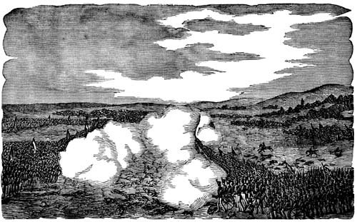 [237]Napoleon now advanced the whole centre of his infantry, to assist the cavalry. They pressed on with an enthusiasm that overpowered all resistance, and, for the moment, carried all before them. It was at this critical period that our noble commander showed himself worthy of a nation’s honor. Everywhere in the thickest of the fight, he was seen cheering by his presence those who were almost ready to fail. He seemed to bear a charmed life. Balls flew thick and fast around him, and his staff-officers fell on every side; yet he moved on unharmed. His unwearied exertions were at length successful in arresting the progress of the French, and in wresting from them the advantages they had gained. Again the attack on the chateau of Hougomont was renewed. The cuirassiers poured the strength of their charge upon the 30th regiment, who received them in a square, and immediately deployed into a line, that the effect of their fire might be more fatal, while the instant re-formation of the square protected them, in a degree, from the next charge of the enemy. Leaving, at length, the 30th regiment, they rushed on to the 69th, and succeeded[238] in reaching them before their square was formed, which enabled them to commit dreadful slaughter. Before the British cavalry could rush to their relief, only a few brave soldiers remained to effect their escape. Then, retiring to their former position, the fire from three hundred pieces of artillery was poured upon the whole line of the allies. The effect of this fire was very destructive. One general officer reported to Wellington that his brigade was reduced to one-third of its original numbers, and that a temporary cessation was necessary to the very existence of his troops. “What you propose,” was the answer of the duke, “is impossible. You, I, and every Englishman on the field, must die in the spot we now occupy.” “It is enough,” replied the general; “I, and every man under my command, are determined to share your fate.”