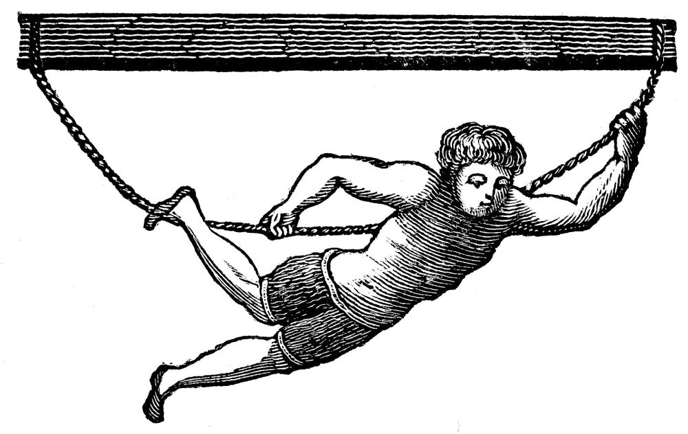 The farce or imposture is thus acted: a number of spectators assemble in the evening at one of their houses, where, after it is grown{190} dark, every one being seated, the angekkok causes himself to be tied, his head between his legs and his hands behind his back, and a drum is laid at his side; thereupon, after the windows are shut and the light put out, the assembly sings a ditty, which, they say, is the composition of their ancestors; when they have done singing the angekkok begins with conjuring, muttering, and brawling; invokes Torngarsuk, who instantly presents himself, and converses with him (here the masterly juggler knows how to play his trick, in changing the tone of his voice, and counterfeiting one different from his own, which makes the too credulous hearers believe, that this counterfeited voice is that of Torngarsuk, who converses with the angekkok.) In the mean while he works himself loose, and, as they believe, mounts up into Heaven through the roof of the house, and passes through the air till he arrives into the highest of heavens, where the souls of angekkut poglit, that is, the chief angekkuts, reside, by{191} whom he gets information of all he wants to know. And all this is done in the twinkling of an eye.