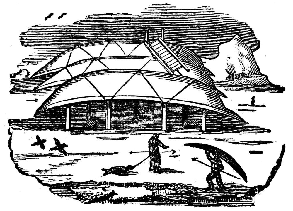 [33] In the summer they wear short frocks, as also in winter, when they work on the ice in the bays; but then they put a white covering over it, that they may not frighten the seals.
