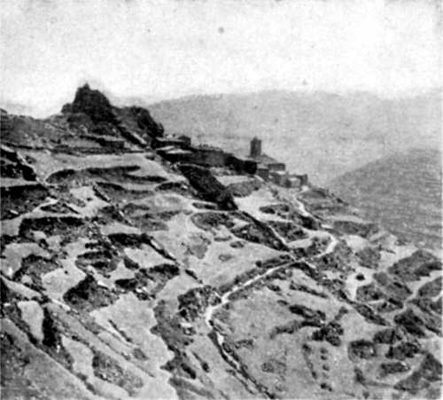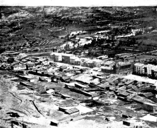 Lám. II, Fig. 1.—Larrés tomado a vista de pájaro. En la fotografía no aparece el Pirineo nevado, que hacia el Norte cierra el horizonte.