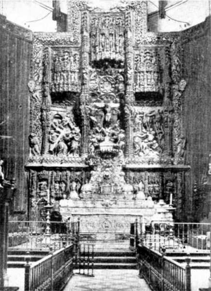 | Lám. XII, Fig. 20.— Huesca. Retablo de mármol de la Catedral. | 102 |