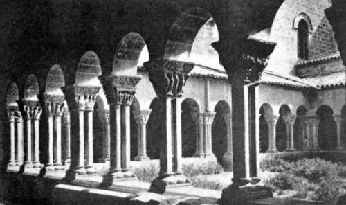| Lám. XI, Figs. 18 y 19.— La primera, presenta, según fotografía reciente, la escalera de descenso a la célebre Campana de Huesca; mientras que la segunda copia el precioso claustro románico de San Pedro el viejo. | 104 |