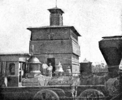 | Lám. XVII, Fig. 23.— Un fortín de la enfermería de San Isidro, en la Trocha del Este. La fotografía, tomada por mí al colodión, presenta en primer término la locomotora de tipo americano, con enorme chimenea de embudo. | 287 |