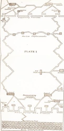 Chapter IV.—Field Trenches: Traversed trenches. Types of trenches. Drainage. Communication trenches. Dugouts. Penetration of projectiles. Communication. Trench mortar positions. Machine guns. Supporting points |