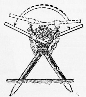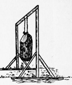 4. Run a strong rope around the outside edges, turning it at each corner to make a loop by which the dummy may be hanged to the gallows.