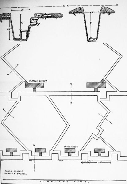 The exercises that may be devised with this equipment are of an infinite variety, ranging from practice runs of one man to each bay of the trench, merely going into and out of the trenches, to an entire squad assaulting each bay with targets placed all along the course.