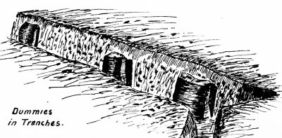 No. 2. One Target D, resting against the rear wall of the fire trench of Bay 4, at the opening of the dugout, to represent a man just emerging from the squad dugout.