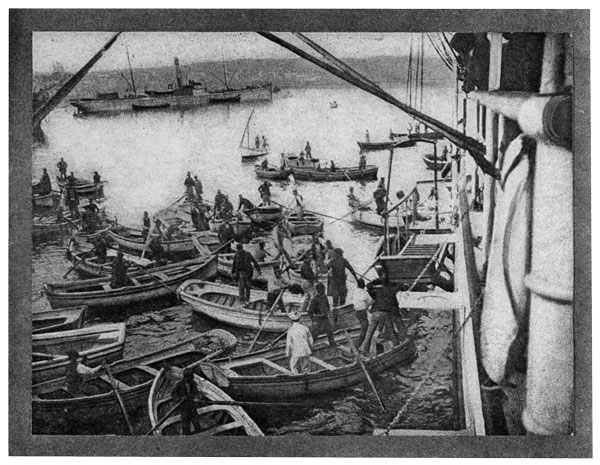 Will the memory of that first visit ever be effaced? Can you not recall, as though it were yesterday, how our hearts beat when we found the invitation to dine at the old castello on a promontory of Ischia? How we donned our spotlessest white, and boarded one of the smaller craft that plies between the island towns! How we threaded our way through the myriad of boats which crowded the Bay of Naples! How fascinated we were with everything, from the fairyland of islands to the old captain who would lean far over the rail and scold at people coming to meet the 163 boat, if they were late, and yet who would stop his boat anywhere to take them on board! How even the rain that threatened to undo our spotlessness seemed part of the scheme, and how, when the wind arose and the waves ran high, you declared we would not go ashore like the common herd! How, when we arrived at our destination, the young officer got the biggest, whitest and cleanest of the rowboats around to the sea-side of our ship, avoiding the crowd which was filling the boats on the other side.
