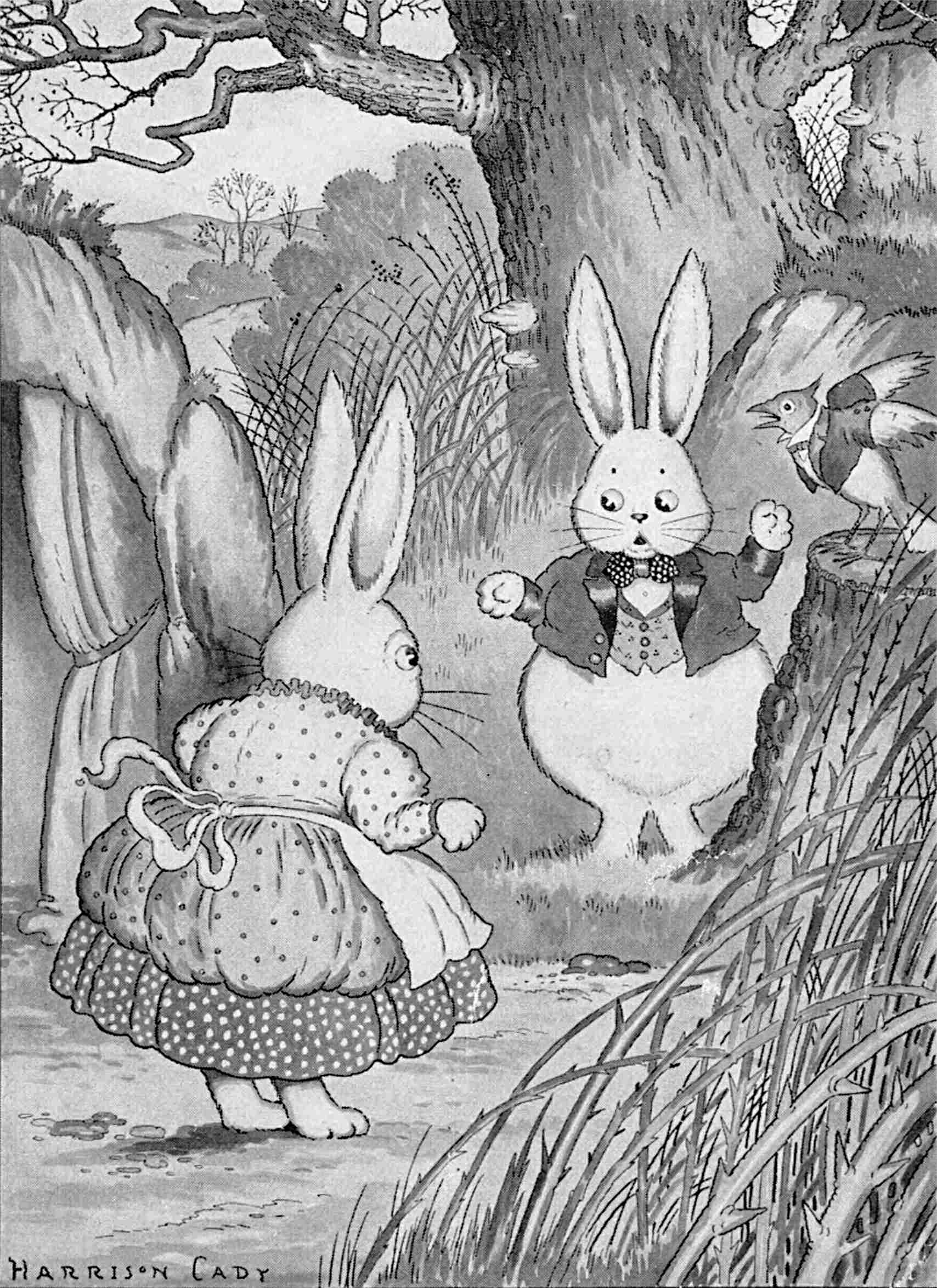 Of course he told Peter Rabbit all about Mr. Quack, and Peter was so delighted at the thought that Mr. Quack was alive that he capered about in quite the craziest way. “Does Mrs. Quack know yet?” asked Peter.