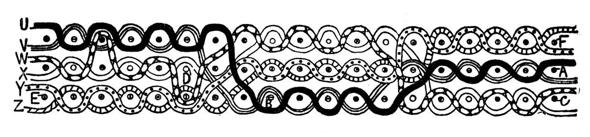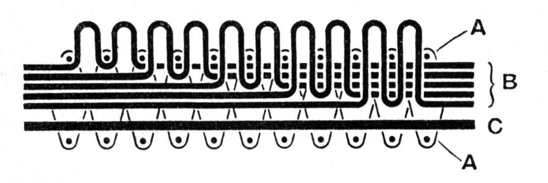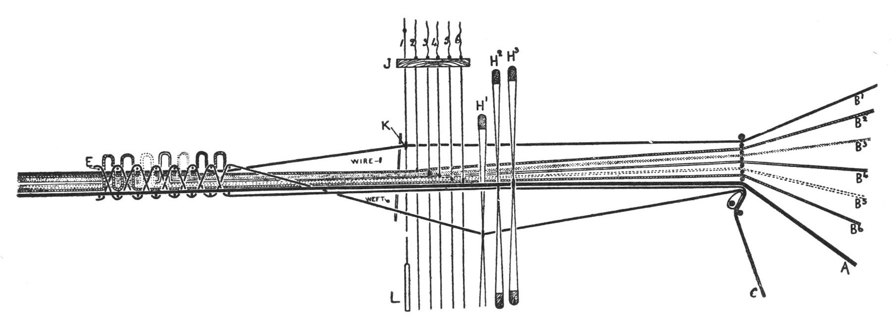 | 2. | LONGITUDINAL SECTION THROUGH HEALDS, HARNESS, SLEY, AND FABRIC | 33 | |