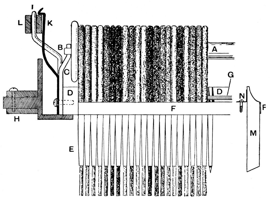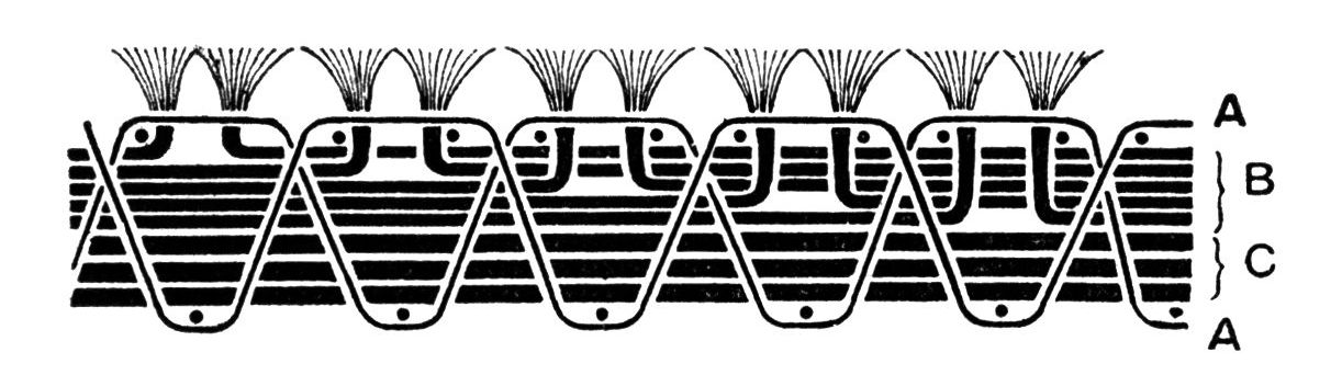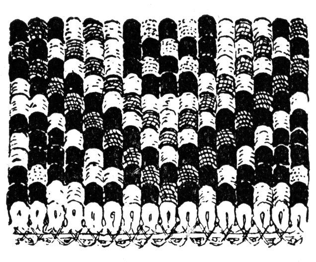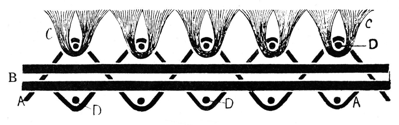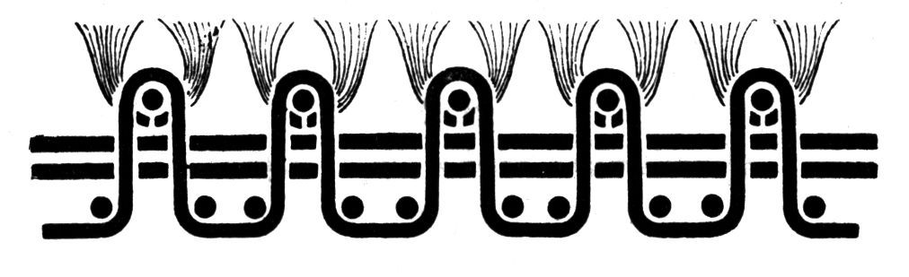 In treating of carpet manufacture, which involves the employment of looms and other machinery of a complicated nature, I was confronted with the problem, how far it was necessary or desirable to explain and illustrate mechanical devices. Upon consideration, it seemed advisable, having regard to the scope of the book, to avoid as far as possible both descriptions and diagrams of a mechanical nature. A certain standard of mechanical intelligence is assumed in the reader; but this work, like the rest of the series, is intended for the layman; and it is impossible to describe and explain detailed mechanical movements except at considerable length and with the aid of elaborate diagrams. Those who wish to study the technique of the subject in detail are referred to Mr. Fred Bradbury’s book, Carpet Manufacture (F. King & Sons, Ltd., Halifax, 1904), which, though it has not been brought up to date, is a classic for the trade, as all experts are aware. I am indebted to him for the use of several blocks.