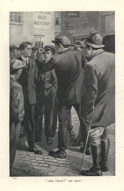 The directors of the Walsbridge Football Club had been badly "caught out". They ran hither and thither in perspiring helplessness, wondering vainly how to deal with the crowd, which swamped all their turnstiles, and leaned its weight in threatening bulk against the creaking wooden gates. Such a throng to see a schoolboys' match had never entered into their calculations. Their turnstile men couldn't take the money fast enough.