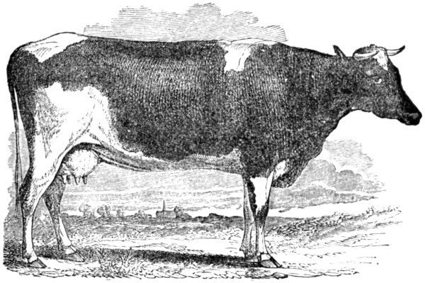 In selecting any breed, therefore, regard should be had to the circumstances of the farmer, and the object to be pursued. The cow most profitable for the milk-dairy[11] may be very unprofitable in the butter and cheese dairy, as well as for the production of beef; while for either of the latter objects the cow which gave the largest quantity of milk might prove very unprofitable. It is desirable to secure a union and harmony of all good qualities, so far as possible; and the farmer wants a cow that will milk well for some years, and then, when dry, fatten readily, and sell to the butcher for the highest price. These qualities, though often supposed to be incompatible, will be found to be united in some breeds to a greater extent than in others; while some peculiarities of form have been found, by observation, to be better adapted to the production of milk and beef than others. This will appear in the following pages.