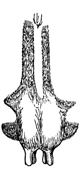 are justly celebrated throughout Great Britain and this country for their excellent dairy qualities. Though the most recent in their origin, they are pretty distinct from the other Scotch and English races. In color, the pure Ayrshires are generally red[12] and white, spotted or mottled, not roan like many of the short-horns, but often presenting a bright contrast of colors. They are sometimes, though rarely, nearly or quite all red, and sometimes black and white; but the favorite color is red and white brightly contrasted, and by some, strawberry-color is preferred. The head is small, fine, and clean; the face long, and narrow at the muzzle, with a sprightly yet generally mild expression; eye small, smart, and lively; the horns short, fine, and slightly twisted upwards, set wide apart at the roots; the neck thin; body enlarging from fore to hind quarters; the back straight and narrow, but broad across the loin; joints rather loose and open; ribs rather flat; hind quarters rather thin; bone fine; tail long, fine and bushy at the end; hair generally thin and soft; udder light color and capacious, extending well forward under the belly; teats of the cow of medium size, generally set regularly and wide apart; milk-veins prominent and well developed. The carcass of the pure-bred Ayrshire is light, particularly the fore quarters, which is considered by good judges as an index of great milking qualities; but the pelvis is capacious and wide over the hips.