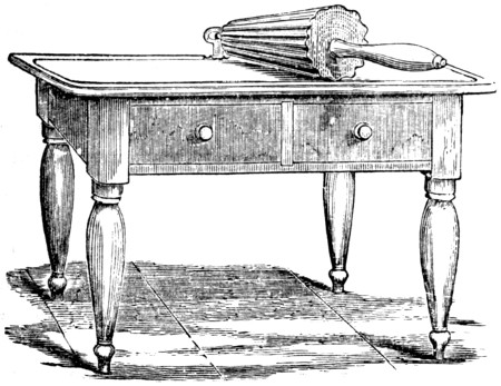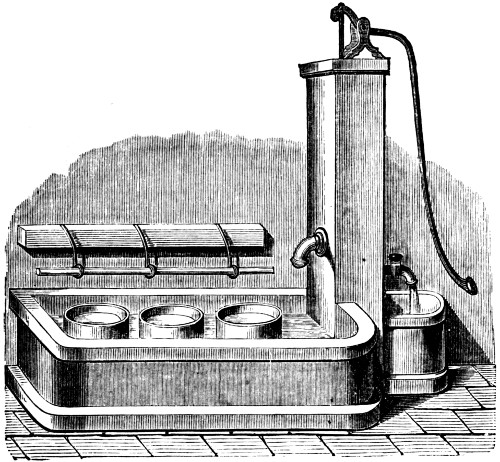 Though Mr. Alcock’s cream is not so rich as what I have described on pp. 377 and 378, it is more than ordinarily so. His mode of separating his milk from his cream differs from my own, his milk being set up in leaden vessels, from which, on the cream being formed, the old milk is drawn, by taking a plug from a hollow tube, with perforated holes in the centre of the vessel. To this difference I am disposed in some degree to attribute the less richness of Mr. Alcock’s cream. On examining, the cream with a spoon, after the dairy-keeper had drawn off the milk, I observed some portion of milk, which would have escaped through my perforated skimmer.
