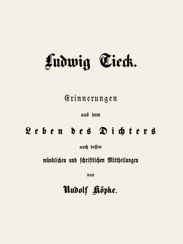 Diese Aufgabe hat sich das folgende Lebensbild gestellt. Freilich sind ihm sehr fühlbare Schranken gesetzt, innerhalb deren es sich halten muß. Nicht etwa durch das, was ich von meiner Kenntniß Tieck’s zurückzuhalten hätte, dessen ist nur wenig, und dieses Wenige nicht eben erheblich; vielmehr sind es die Lücken dieser Kennt[S. ix]niß selbst, welche sich bemerklich machen. Die Grundlage der gegebenen Darstellung ist eine Reihe gelegentlicher mündlicher Mittheilungen Tieck’s, auf deren Vervollständigung aus andern Quellen, wenigstens für die frühern Abschnitte seines Lebens, nicht mehr zu rechnen ist. Es lebt Niemand mehr, der von Tieck’s Jugend, seinem Bildungsgange und ersten Eintritt in die Literatur aus eigener Erfahrung Kunde hätte; die Wenigen, welche von der Zeit der romantischen Dichtungen zu sagen wissen, lassen sich mit Namen aufzählen; in den Denkwürdigkeiten älterer Zeitgenossen erscheint er nur vorübergehend, und auch diese Andeutungen reichen kaum über den Aufenthalt in Jena zurück. Einige Mal erwähnt seiner Goethe in Briefen, Jahresheften, Kritiken und Gesprächen, dann Schiller, Fichte, F. Schlegel, Gries, Körner, Philipp Otto Runge, Solger, dieser allerdings ausführlich, Bettina in ihren Briefen, Steffens, Laun, Oehlenschläger, der Schauspieler Lange, Karl Förster, Carus, Holtei, Strombeck und Immermann in ihren Denkwürdigkeiten und Tagebüchern. Die letzten Fünf kannten ihn in der dresdener Zeit, die Andern begegneten ihm früher, doch fast alle erst in dem Lebensabschnitte zwischen Jena und Dresden. Zahlreicher sind die Berichte literarischer Touristen über einzelne Besuche bei Tieck und oberflächliche Berührungen mit ihm; sie gehören sämmtlich der spätern Zeit an. Nach diesen Angaben ein Bild zu entwerfen, ist nicht möglich; wer es dennoch unternehmen wollte, würde kaum einen matten Umriß erhalten.