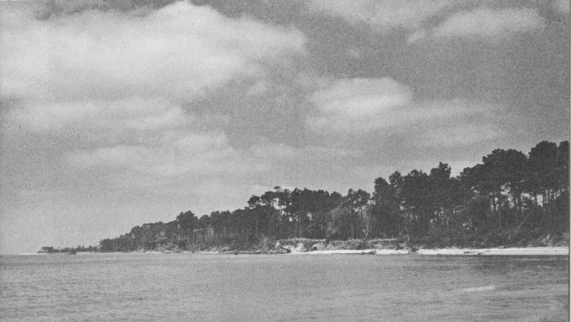 From the fort and settlement area, White proceeded again along the shore southward to the “point of the creek” (i. e., the point of Shallow Bag Bay or, as it was called in 1716, “Town Creek”), which had been fortified with “Falkons and small Ordinance” and where the small boats of the colony were habitually kept, but could find no sign of any of these things. Then, on returning to the fort and settlement area, White searched for certain chests and personal effects which he had secretly buried in 1587. The Indians had discovered the hiding place, had rifled the chests, torn the covers off the books, and left the pictures and maps to be spoiled by rain. Considering that Gov. John White was probably John White the artist and illustrator of the expedition of 1585-86, one can imagine his feelings on seeing his maps and pictures irretrievably ruined. However, according to his own words he was cheered at the thought that, as indicated by the word CROATOAN on the palisade post, “a certaine token,” his daughter, granddaughter Virginia Dare, and the colonists would be found at Croatoan Island, where Manteo was born and where the Indians had been friendly to the English.