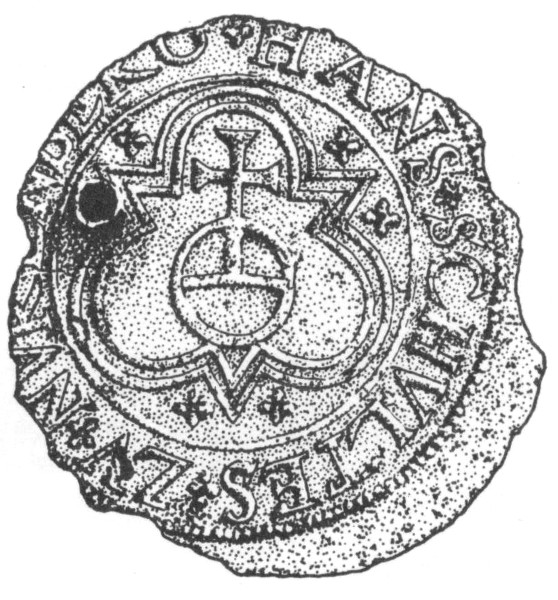 Drawings of one of the Hans Schultes counters, or jettons, found at the fort. The obverse side reads “Glick Kumt Von Got Ist War” (True good fortune comes from God).
